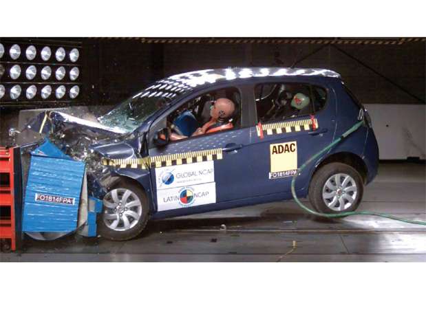 O Latin NCAP divulgou nesta terça-feira os resultados de mais uma rodada de testes de colisões com carros vendidos no Brasil. Destaques de vendas no mercado nacional, Fiat Pálio e Chevrolet Onix decepcionaram na avaliação e conquistaram apenas três estrelas para proteção em adultos e duas para crianças a avaliação vai de zero a cinco. Veja testes de colisão realizados pelo Latin NCAP De acordo com o Latin NCAP, uma versão sem airbags do Palio chegou a ser testada, obtendo zero estrela desde maio deste ano a Fiat utiliza airbag em todas as versões do Palio. Na avaliação, o Latin NCAP afirmou que incentiva a FIAT a que ela continue a avançar às cinco estrelas em segurança do passageiro adulto. Na avaliação do Onix, que obteve os mesmo resultados do Palio, a empresa afirmou que a estrutura do carro foi considerada estável, mas o piso do veículo se abriu na área dos pés ao lado do motorista com a colisão. O fato de ele ter atingido apenas três estrelas é pouco impressionante. O Latin NCAP, portanto, espera que a Chevrolet atinja logo desempenho de cinco estrelas em vez de ficar com seus atuais e desapontadores resultados, diz a avaliação. Outro carro comercializado no Brasil que teve os resultados divulgados foi o Peugeot 208. O veículo da montadora francesa obteve quatro estrelas quanto à proteção de adultos e três estrelas para a proteção de ocupantes infantis. De acordo com a avaliação, o modelo teve desempenho correto, tendo sido qualificado como estável. Contudo, os equipamentos de segurança da versão básica são em menor número do que a versão básica europeia do veículo. Dispositivos como ESC, airbags laterais, ISOFIX ou o interruptor de desativação do airbag do acompanhante não estão no modelo básico da América Latina, ressalta a avaliação. O Latin NCAP realiza testes de colisão em veículos para saber os riscos que uma pessoa corre em uma batida frontal Os carros são avaliados em acidentes a 64 km/h com bonecos equipados com sensores. O Ford Ecosport foi o primeiro carro vendido no Brasil a receber cinco estrelas, seguido pelo Volkswagen up!. Compare preços de carros 0 km no Brasil